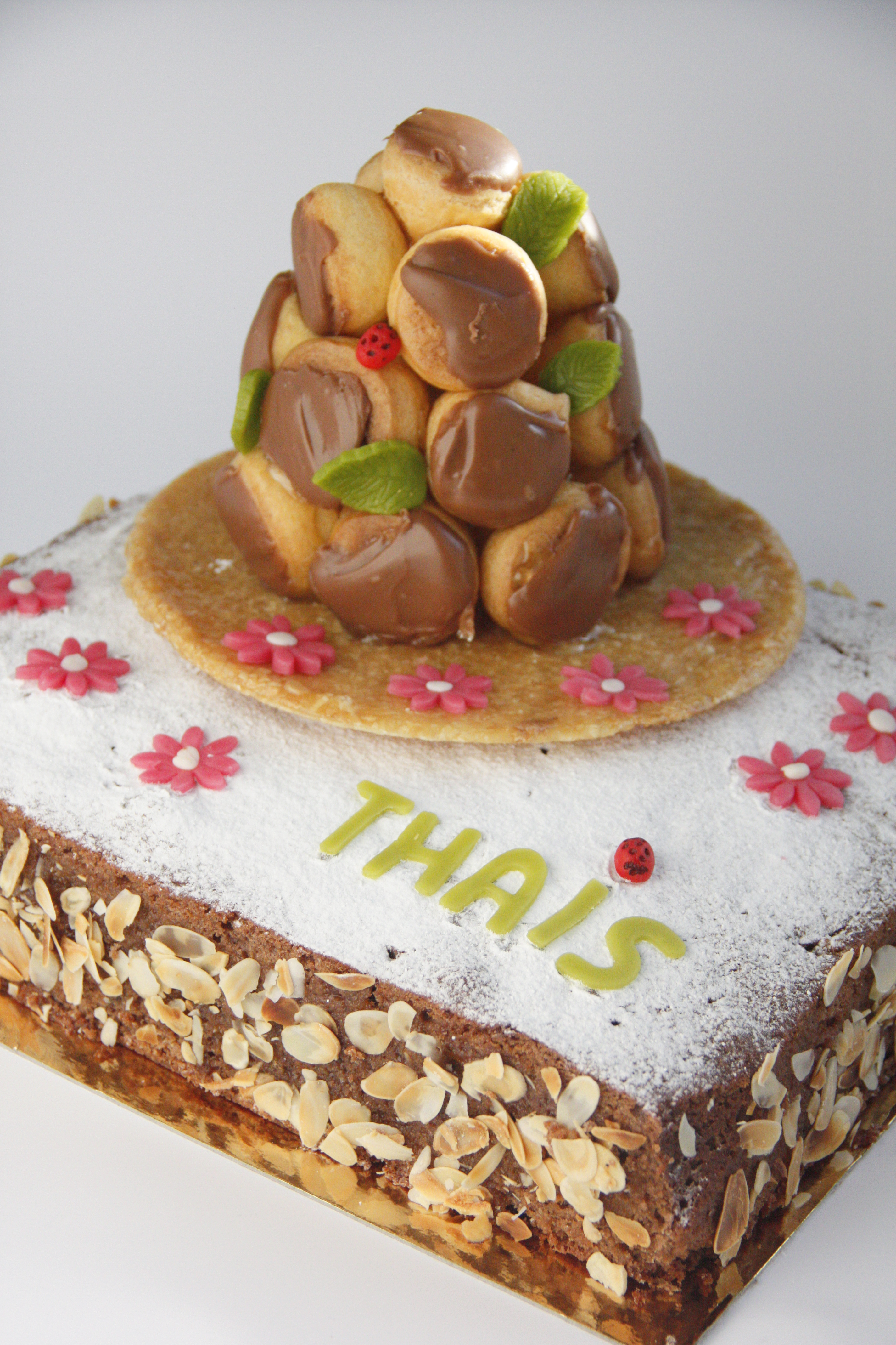 Cake chocolate et petits choux nougatine